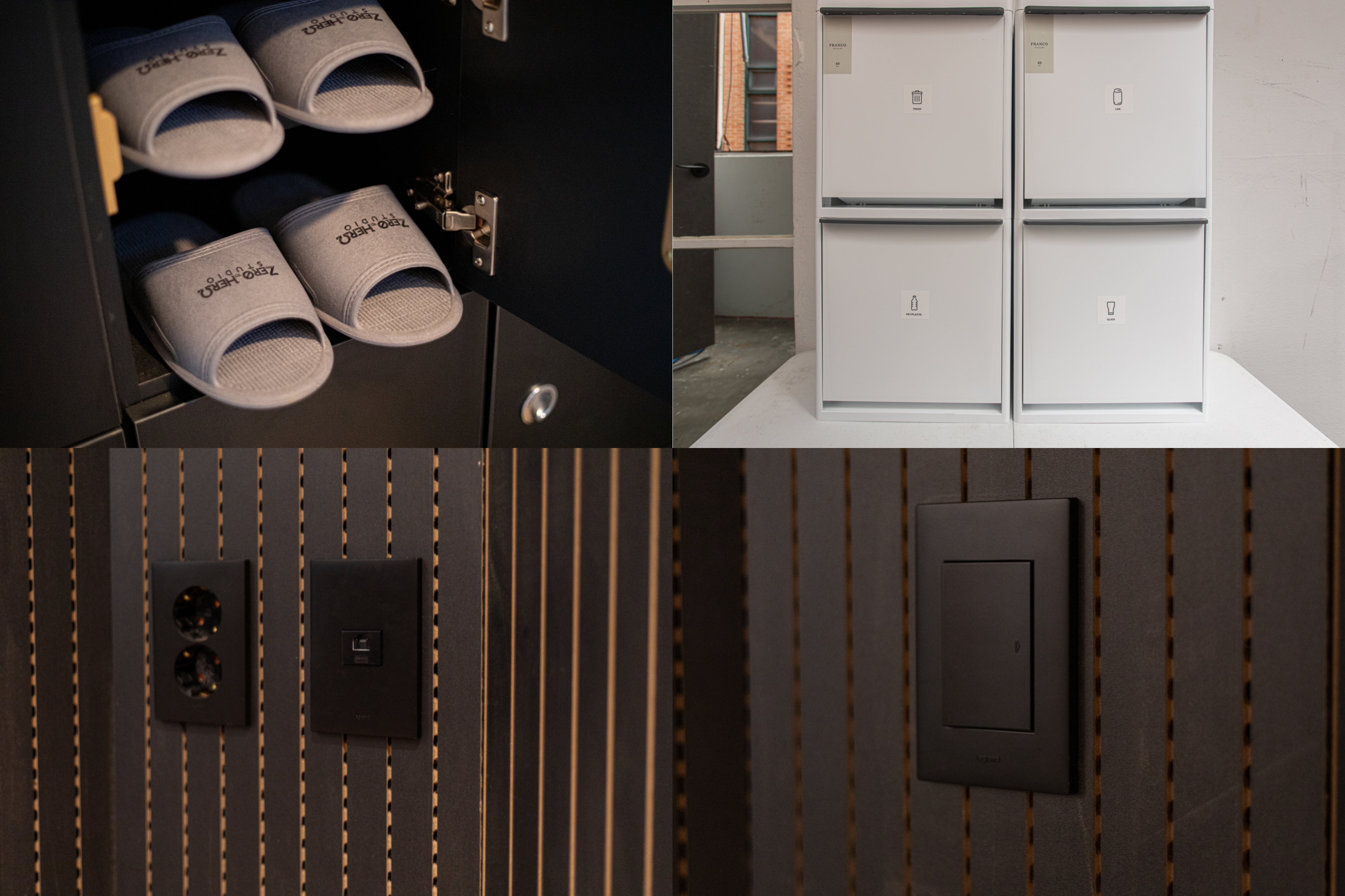 • 전 호실 전용 신발장 락커 (잠금장치) 및 슬리퍼 2켤레 제공